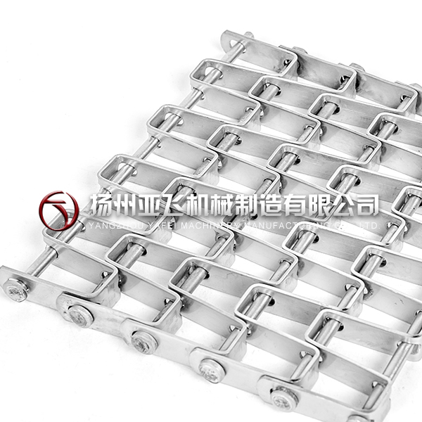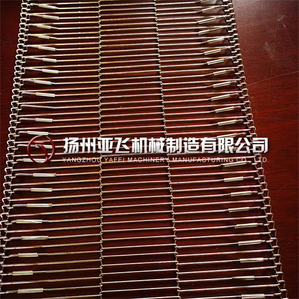 用于自動(dòng)化地板涂裝生產(chǎn)線(xiàn)包括地板烘干回火線(xiàn)、流平機(jī)、輥涂線(xiàn),使用鏈條型網(wǎng)帶,網(wǎng)帶使用穿絲繞絲編織,兩邊焊接不銹鋼鏈條,網(wǎng)帶中間添加不銹鋼隔套,可以減少摩擦力防止刮蹭,更益于地板的生產(chǎn)和品質(zhì)。