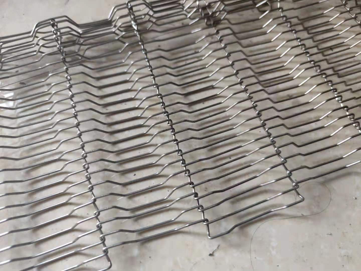 我公司研發(fā)生產(chǎn)的一款邊緣帶擋片的網(wǎng)帶,有如下特點(diǎn)一,這款網(wǎng)帶采用緊密型編織方式網(wǎng)絲,直徑1.5毫米串...